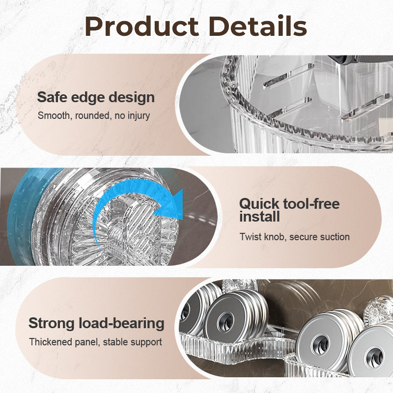 EASY TOOL-FREE INSTALLATION: Simply twist and tighten the knob to secure the suction cup firmly. The vacuum adhesion design ensures strong stability without damaging walls or surfaces. Multiple fine-polished edges make handling safe, avoiding scratches or hand injuries.