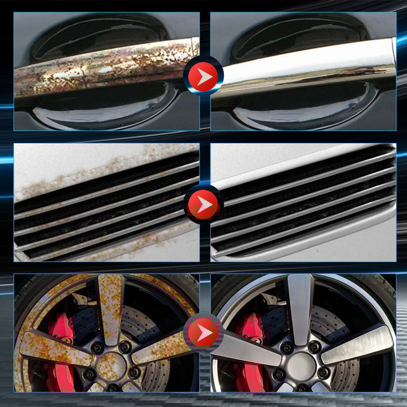 Answer: Yes, it can easily remove the most stubborn rust stains on all metal and chrome surfaces in just 3 minutes.